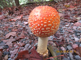 Remember that mushroom from a couple of posts ago - the top two pictures are the original photos that I took. Well when I returned to that area I found that it had transformed into something totally different. It had bloomed into a true mushroom shape. The third picture is an angle that my friend Sandy used to take whenever she found a mushroom she liked. She held her camera underneath the rim and took a picture looking up. gives it a totally different angle.